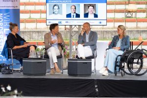 Unter dem Titel „Herausforderungen bewältigen“ bot der Sommertalk inspirierende Einblicke, eingebettet in ein stilvolles Ambiente mit kulinarischer Begleitung. Moderiert von Juliane Möcklinghoff (NDR) diskutierten die Speaker:innen zentrale Fragen unserer Zeit: