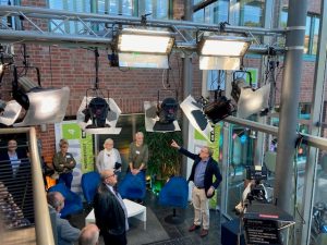 Rund 30 Mitglieder und Interessierte nutzten die Gelegenheit, sich beim Lokalfernsehsender noa4 anzusehen wie Fernsehen gemacht wird und erlebten die tagesaktuelle Live-Sendung hautnah – ob im Regieraum, im Studio oder in einem kurzen Talkgespräch. Geschäftsführer Ulrik Neumann, Chefredakteur Marco Piechocki und Moderator Michael Eggert gaben spannende Einblicke, ergänzt durch Informationen von Thomas Köhn zur Weiterentwicklung von Social Media und Livestream. Beim anschließenden Austausch wurden Ideen für neue Formate und Kooperationen im Sinne einer starken Stadt-Kommunikation diskutiert.
